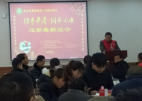 2月7日,“攜手并肩 同奔小康---迎新春聯(lián)誼會(huì)”,在響水縣金山大酒店隆重舉行,響水縣黃海殘疾人互助互濟(jì)會(huì)會(huì)長何顏軍致歡迎詞,縣殘聯(lián)張副理事長發(fā)表講話,關(guān)工委潘副秘書長、民政局薛科長等部門領(lǐng)導(dǎo)參加會(huì)議,中國人壽保險(xiǎn)公司響水縣支公司、響水第三人民醫(yī)院、東方醫(yī)院等贊助單位代表到場祝賀,縣電視臺(tái)從頭到尾跟蹤采訪報(bào)道。