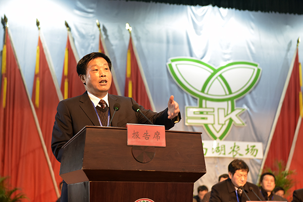 副場長王林宣讀了大會關(guān)于上述三個報告和兩份相關(guān)文件的決議,號召全場干群為實現(xiàn)2018年各項目標(biāo)任務(wù)而不懈努力。黨委副書記韓正光宣讀表彰決定,對2017年度成績突出的36個先進(jìn)單位、55個先進(jìn)個人或家庭進(jìn)行表彰并隆重頒獎。四個單位的主要負(fù)責(zé)人和創(chuàng)業(yè)創(chuàng)新先進(jìn)個人代表溫仕貴分別作了交流或表態(tài)發(fā)言。