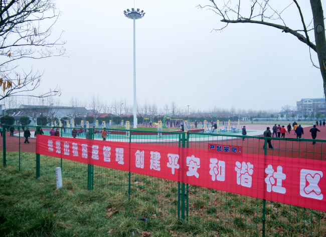縱觀淮海職工休閑體育運動廣場,一萬平方米的活動場地包裹在綠樹環(huán)繞、草坪茵茵的綠色中,梧桐、蜀檜、香樟、合歡等樹木與周邊的柵欄組合在一起,形成了密封安全的運動場所。八跑道的紅色塑膠跑道,圍繞在廣場的周邊,走一圈下來,雖然有500多步,但老年職工居民顯然并不滿足,一般每個人都在這里要跑上七八圈,甚至十多圈。