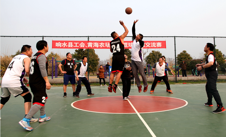 為豐富職工文化生活,促進(jìn)溝通交流。日前,由黃海農(nóng)場(chǎng)工會(huì)與響水縣工會(huì)共同舉辦的籃球友誼交流賽在黃海職工文化廣場(chǎng)舉行。黃海農(nóng)場(chǎng)黨委書(shū)記王亦勤,縣委常委、宣傳部長(zhǎng)李運(yùn)連,縣委常委、人武部政委顧建明,黃海農(nóng)場(chǎng)副場(chǎng)長(zhǎng)薛亞林、工會(huì)主席裴書(shū)中共同出席。