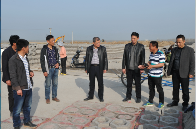 5點15分,當李衛(wèi)東一行驅車來到農場神禾路旁的一支渠駁岸現(xiàn)場時,橋頭旁的10多名工人正在用水泥澆鑄駁岸碼頭和流水口。李衛(wèi)東一行走到河旁查看和了解了水泥駁岸的生產進度和質量情況,并對隨行人員就農場下一步河長治的規(guī)劃和美麗淮海的建設情況,進行了探討。
