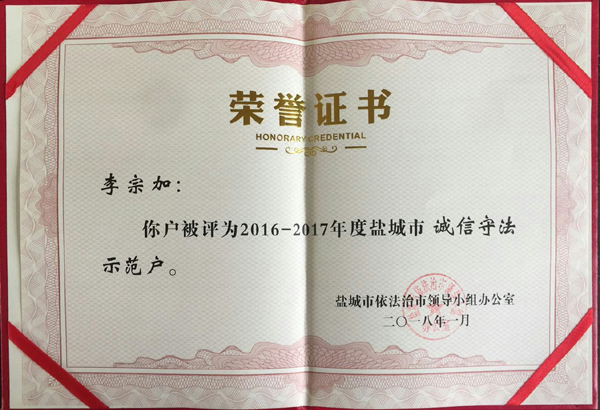 近日傳來喜訊,新洋農(nóng)場有限公司李宗加、朱雪芹、王毓松三戶職工家庭被評為射陽縣“誠信守法示范戶”,其中李宗加還被評為鹽城市“誠信守法示范戶”。