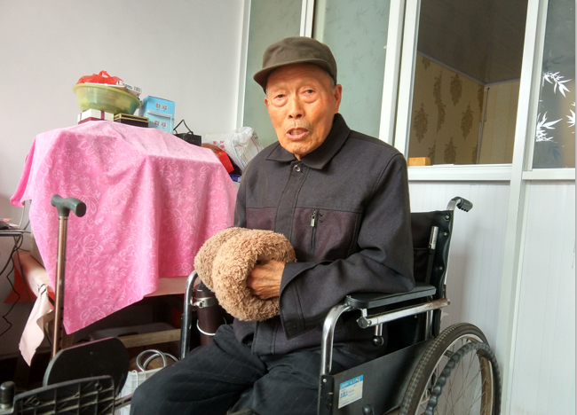 這名已經(jīng)91歲高齡的老人名叫楊文才,是江蘇農(nóng)墾淮海農(nóng)場建國前的離休老干部,因為抗美援朝,1951年23歲的楊文才毅然報名參軍,后因戰(zhàn)局的扭轉(zhuǎn),他從102師改編成農(nóng)建四師,來到淮海農(nóng)場屯墾戍邊。從1953年直到離休前,楊文才一直是單位的會計。現(xiàn)在坐著輪椅來到藤架下休息聊天是他每天的必修課。