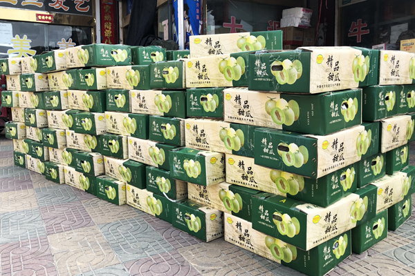 在?港農(nóng)場(chǎng)快遞發(fā)貨點(diǎn),瓜果蔬菜經(jīng)濟(jì)人楊宏林每天都要打包100多箱的玉茹甜瓜發(fā)往全國(guó)各地,其中有不少回頭客,也有不少老客戶介紹來的新客戶。客戶從微信上下單,我到瓜農(nóng)地里現(xiàn)摘現(xiàn)賣,保證甜瓜的口感和新鮮度。楊宏林說,從去年開始他就發(fā)現(xiàn)微信圈的甜瓜銷售也不錯(cuò),象他這樣每天通過微信發(fā)快遞銷售甜瓜量比較大的經(jīng)濟(jì)人農(nóng)場(chǎng)就十幾個(gè)。