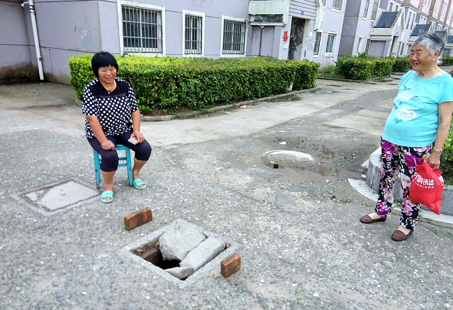 昨天,家住射陽縣淮海農(nóng)場淮海路19號樓門面房中的農(nóng)場居民賈長梅,傍晚發(fā)現(xiàn)樓道口間交通要道上的窨井蓋不知何時被過往的車輛壓壞了,知道這是安全隱患的的她,連忙拿來兩塊磚頭放在前后位置,又覺得不妥,就搬來了凳子,一邊坐在旁邊看護(hù),一邊叫人聯(lián)系社區(qū)管理人員前來修復(fù)。