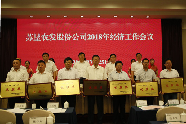 會議期間,蘇墾農(nóng)發(fā)黃海分公司、蘇墾農(nóng)發(fā)東辛分公司、蘇墾農(nóng)發(fā)臨海分公司與大華種業(yè)集團(tuán)等四家單位作了交流發(fā)言。會議隆重表彰了一批上半年工作業(yè)績突出的先進(jìn)集體,授予7家分公司2018年度“三夏”工作優(yōu)勝獎、6家分公司2018年度拓展基地“三夏”工作優(yōu)勝獎、3家分公司2018年度小麥高產(chǎn)獎、10家分公司2018年度夏熟效益獎、4家分公司2018年度拓展基地夏熟效益獎。7月24日晚,還專題召開蘇墾農(nóng)服工作推進(jìn)會,就下一階段農(nóng)業(yè)社會化服務(wù)體系建設(shè)工作進(jìn)行了部署要求。