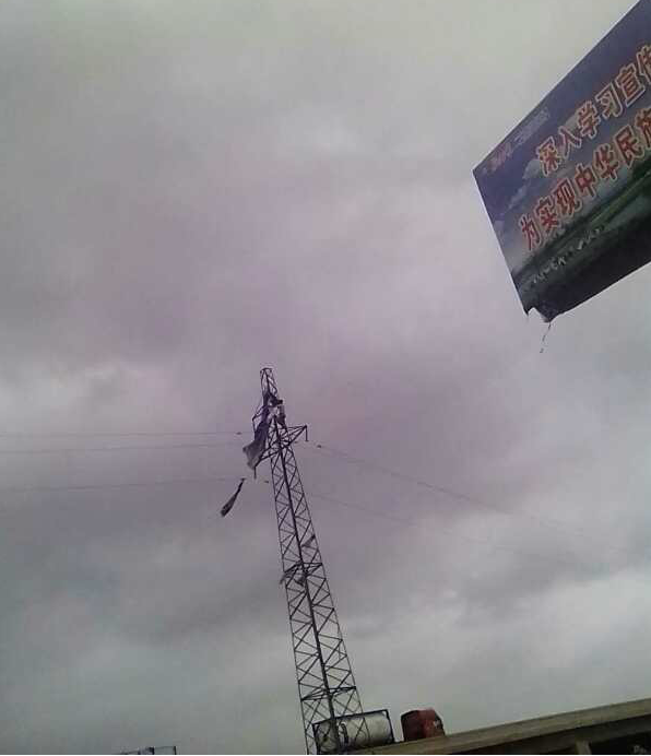 目標(biāo)確定后,張榮生毫不猶豫地系上安全帶,也不管當(dāng)時塔高風(fēng)急的危險,頂著風(fēng)雨一步一步艱難地向塔頂爬去。其他人員立即向公司領(lǐng)導(dǎo)和值班人員匯報故障出現(xiàn)的地點及清除情況。在供電公司,平時很輕松的登高作業(yè),今天卻在“溫比亞”風(fēng)雨的侵襲下,每登一步都是很艱難,甚至眼睛都不能正常睜開。就是這樣,張榮生全然不顧,他在穩(wěn)住自己的同時,依次拉扯下廣告布,迅速排除了故障。
