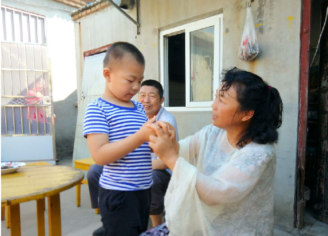現(xiàn)在她的小孫子7歲,智力已經(jīng)達(dá)到了6歲半的水平。更讓朱鎖珍開(kāi)心的是,孫子有了生活自理能力。