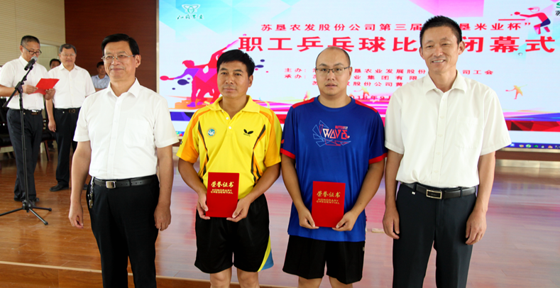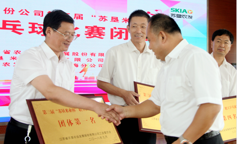 此次比賽共決出團體和男單兩個項目的前六名和十二強。經過兩天緊張激烈的比賽, 新洋分公司代表隊脫穎而出,榮獲團體第一名,第二至第六名的代表隊分別為:黃海分公司、蘇墾米業(yè)、東辛分公司、三河分公司、白馬湖分公司。新洋分公司的王光軼榮獲男子單打第一名,三河分公司項永寶、新曹分公司顧文才分獲二、三名。新洋分公司、黃海分公司、蘇墾米業(yè)、東辛分公司獲得賽會組織獎;南通分公司榮獲精神文明獎。
