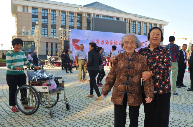據(jù)農(nóng)場有限公司董事長、總經(jīng)理單祥忠講,目前農(nóng)場公司7543名職工居民中,80歲以上的老人有724人,60-79歲的老人有1357人,80歲以上的人口占60歲以上人口的35%,農(nóng)場公司是一個(gè)明顯的健康長壽小鎮(zhèn),這是與這里溫帶與亞熱帶的區(qū)域生態(tài)環(huán)境、洪澤湖的水資源、健康養(yǎng)身的品牌大米和農(nóng)場健康養(yǎng)老的氛圍緊密相關(guān),這也是老年人健康長壽的養(yǎng)鍵所在。圖為老人在第十一、十二屆廣場文化節(jié)上。