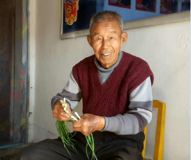 李朋友飲食比較清淡,少肉多素,油鹽也不多。每天下午2點(diǎn)左右,他會(huì)定時(shí)喝些兒孫們孝敬給他享用的腦白金、牛奶等營(yíng)養(yǎng)品。每月有近7000元的工資,想買什么就買什么,那么多子女一個(gè)也不過問,只是由著他怎么處理,但老人從不亂花瞎用。老人很會(huì)做人,也會(huì)討兒孫們的歡心,每當(dāng)他用存單積攢到6萬元錢時(shí),就會(huì)6個(gè)子女一家1萬地均分,讓兒孫們貼補(bǔ)家用。李朋友對(duì)子女出手大方,教育投入上一點(diǎn)也不含糊,一定要他們練好書,學(xué)會(huì)技能,所以他的子孫都在自食其力地工作,這讓李朋友很是欣慰。當(dāng)然,李朋友在兒孫中威望極高,逢年過節(jié)20多個(gè)子孫紛紛來到家中團(tuán)聚,給老人帶來孝敬的物品,為老人請(qǐng)安祝福,讓老人的晚年生活充滿了快樂!圖為李朋友老人在做晾被栽菜和擇菜時(shí)的鏡頭。