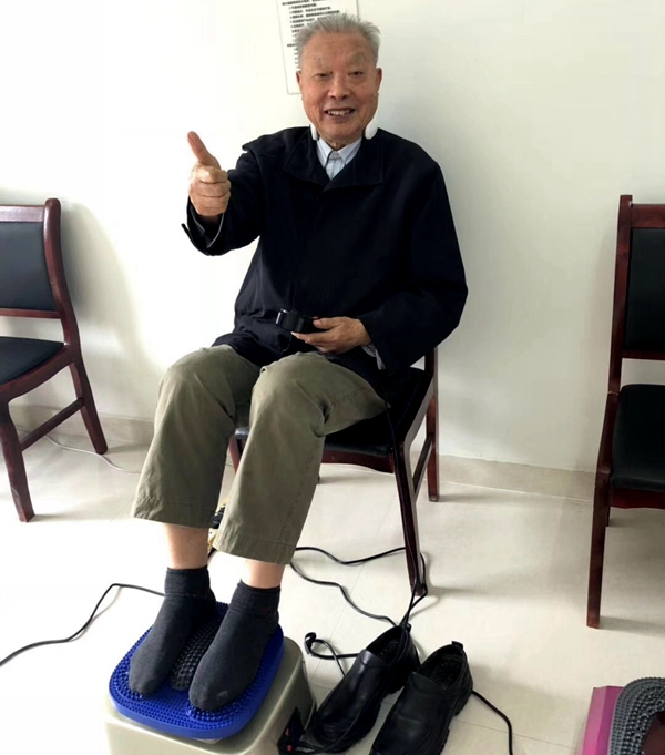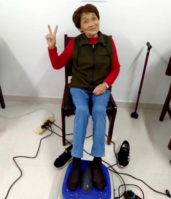 “董爹爹,你快來試試這個(gè)足底按摩儀,很舒服哦!”姚奶奶呼喚著老朋友,你一言我一語地交流著體驗(yàn)感受,于是便留下了姚奶奶比著“耶”,董爹爹豎起大拇指的生動(dòng)照片。