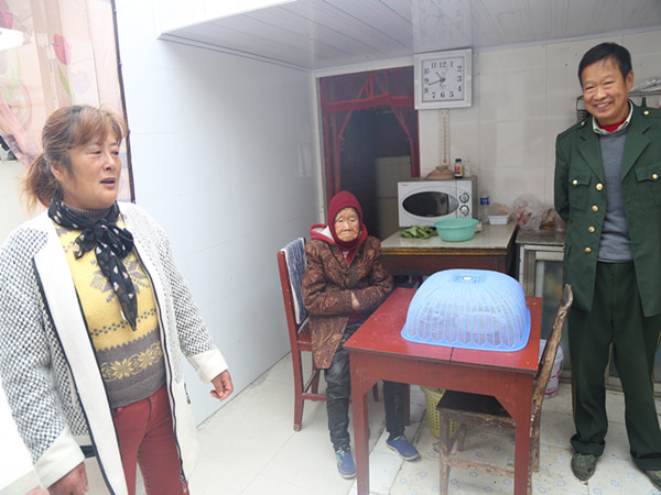兒子這邊,周萍費(fèi)了苦心,家里的兩位老人,她也盡心盡力照顧。2010年正月,周萍98歲身體一直健康的公公突然中風(fēng)了,可老劉外出打工,兒子在軍校學(xué)習(xí),周萍一時(shí)慌了,幸好鄰居經(jīng)過(guò),看到了,給她叫了輛三輪車(chē),到了醫(yī)院,她二話不說(shuō),背起老人直往病房樓跑,一百來(lái)斤的女子愣是把一百三四十斤的老人背到了三樓的病房,把醫(yī)生都看愣了。但老人畢竟上了年紀(jì),就此癱瘓了。吃穿都不愁,拉撒怎么辦呢?家里又沒(méi)有男人,婆婆95歲也需要人照顧,想到公公健康時(shí)那么愛(ài)干凈,一周都要去浴室洗一次澡,她咬了咬牙,對(duì)著已經(jīng)沒(méi)有意識(shí)的公公說(shuō):“爸,湘林不在家,我就是您親閨女,每個(gè)人都會(huì)老,我照顧您是應(yīng)該的。”過(guò)了幾日,浴室管理員看老人好久不來(lái)特地跑他們家,看到周萍正給老人換尿不濕,問(wèn)人知道是兒媳后直豎大拇指。