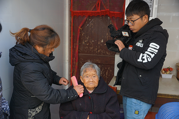 12月12日,射陽縣電視臺記者一行到新洋農(nóng)場采訪拍攝百歲老人姚大姐,探尋她的長壽之道。