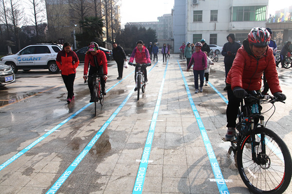 圖為騎行車隊開展慢騎比賽時情景