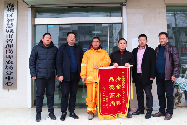 “感謝,非常感謝!”2月14日上午,家住東??h白塔埠鎮(zhèn)董園村村民王作亮將一面寫(xiě)著“拾金不昧 品德高尚”的錦旗,送到了崗埠街道環(huán)衛(wèi)辦環(huán)衛(wèi)工楊祝山的手中,不停地表示感謝。