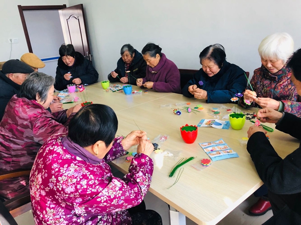 居家養(yǎng)老服務(wù)中心精心準(zhǔn)備了紐扣花束創(chuàng)意手工,活動(dòng)開(kāi)始前,工作人員詳細(xì)介紹了花藝的造型要素和制作技巧手法,并在現(xiàn)場(chǎng)做了生動(dòng)的演示。雖是假花,卻勝似真花,活動(dòng)現(xiàn)場(chǎng)充滿著春天的氣息,老人們興趣盎然,邊看邊學(xué),享受著親自創(chuàng)作的樂(lè)趣和插花藝術(shù)帶來(lái)的快樂(lè)。