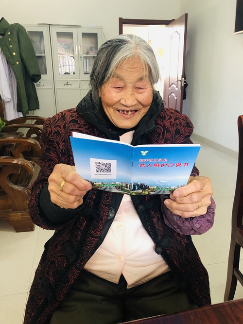 “這本小冊(cè)子好,圖片文字一樣不少,一看就懂,關(guān)鍵可以放在口袋里,隨時(shí)翻閱。”日前,新洋居家養(yǎng)老服務(wù)站健康小屋內(nèi),測(cè)量完血壓的仲奶奶翻看著一本“口袋書(shū)”,贊嘆道。