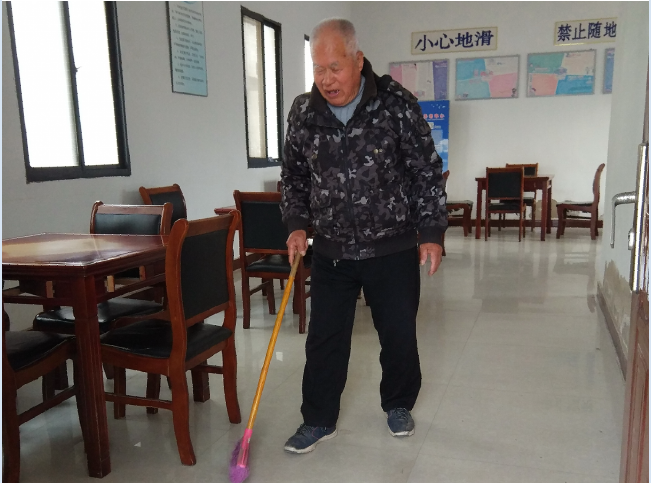 4月16日早晨6點(diǎn)多鐘,在淮海農(nóng)場(chǎng)城西社區(qū)居委會(huì)活動(dòng)中心內(nèi),只見一位80多歲老人,正麻利地開窗通風(fēng)、擦桌、掃地和整理桌椅,老人的行為讓人很感動(dòng)。在感動(dòng)之余,不免上前與老人攀談起來。