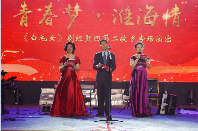 淮海農(nóng)場有限公司董事長、總經(jīng)理單祥忠代表農(nóng)場公司黨委和廣大干部職工向重回第二故鄉(xiāng)的《白毛女》劇組全體演職人員和知青朋友們的到來表示熱烈的歡迎和崇高的敬意,同時還向五十年前,廣大知青朋友在毛澤東主席“知識青年到農(nóng)村去,那里是廣闊天地,大有作為”的號召聲中,胸懷壯志,滿懷豪情地來到淮海,與農(nóng)場職工一道,同甘共苦、同舟共濟,披星戴月,戰(zhàn)天斗地,把汗水和青春揮灑在了淮海農(nóng)場的大地上表示衷心的感謝,并預(yù)祝演出圓滿成功。