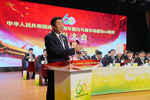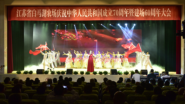 9月23日,在節(jié)日般的喜慶氛圍中,白馬湖農(nóng)場有限公司干部職工代表和特邀嘉賓共450人歡聚一堂召開慶祝大會,共同慶祝中華人民共和國成立70周年暨白馬湖農(nóng)場建場60周年。集團公司總經(jīng)理、蘇墾農(nóng)發(fā)董事長胡兆輝,淮安區(qū)委書記徐子佳出席并講話,白馬湖農(nóng)場公司黨委書記、董事長、總經(jīng)理姚春華致辭,黨委副書記韓正光主持大會。