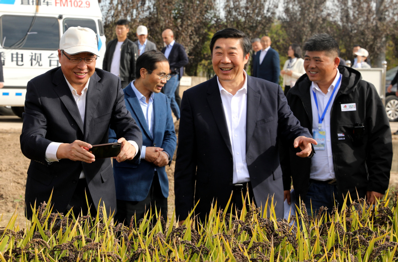 胡兆輝在致辭中首先代表集團(tuán)公司、省農(nóng)墾農(nóng)業(yè)發(fā)展股份公司向與會領(lǐng)導(dǎo)和嘉賓表示歡迎和感謝!在介紹了江蘇農(nóng)墾改革創(chuàng)新發(fā)展情況后,他說,示范園項目自實(shí)施以來,在中德兩國農(nóng)業(yè)部的悉心關(guān)懷和親切指導(dǎo)下,憑借德方專家的嚴(yán)謹(jǐn)務(wù)實(shí)、中方團(tuán)隊的精益求精,示范園階段性成效顯著,得到了中外政府領(lǐng)導(dǎo)、專家學(xué)者的高度稱贊。當(dāng)前,在做好“六穩(wěn)”工作、落實(shí)“六?!比蝿?wù)的新形勢下,合作、創(chuàng)新和轉(zhuǎn)型升級,是我們必須面對和解決的問題。希望與會領(lǐng)導(dǎo)和嘉賓以本次“田間日”活動為新起點(diǎn),和示范園共同開展農(nóng)業(yè)科技項目合作和交流,攜手實(shí)施農(nóng)業(yè)職業(yè)培訓(xùn)計劃,實(shí)時分享農(nóng)業(yè)領(lǐng)域優(yōu)秀成果,“共塑創(chuàng)新,筑夢未來”,為助力江蘇省乃至全國現(xiàn)代農(nóng)業(yè)高質(zhì)量發(fā)展、服從服務(wù)于中國“鄉(xiāng)村振興”戰(zhàn)略做出新的更大貢獻(xiàn)!