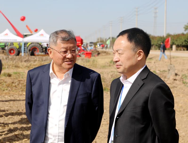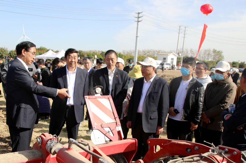 與會領(lǐng)導(dǎo)和嘉賓在示范園田間共同觀摩了先進(jìn)農(nóng)機(jī)具作業(yè)展示。