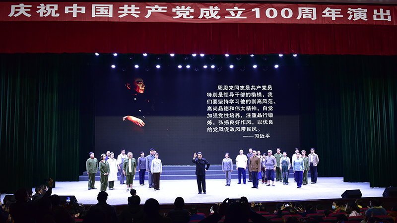 周恩來,這是一個光榮的名字、不朽的名字。周恩來同志是近代以來中華民族的一顆璀璨巨星,是中國共產(chǎn)黨人的一面不朽旗幟。作為淮安市委慶祝中國共產(chǎn)黨成立100周年獻(xiàn)禮作品之一,該劇以習(xí)近平總書記提出的不忘初心、堅(jiān)守信仰,對黨忠誠、維護(hù)大局,熱愛人民、勤政為民,自我革命、永遠(yuǎn)奮斗,勇于擔(dān)當(dāng)、鞠躬盡瘁,嚴(yán)于律己、清正廉潔這六個杰出楷模為主線,擷取了黃河搶險、送侄回鄉(xiāng)、故鄉(xiāng)行、一件珍貴的襯衫、顧全大局、西花廳不滅的燈光、最后的歲月等七個篇章,以藝術(shù)的手法還原或再現(xiàn)了周恩來作為中國共產(chǎn)黨人杰出楷模,在為中國人民謀幸福、為中華民族謀復(fù)興、為人類進(jìn)步事業(yè)而奮斗的光輝一生中的一些典型情景,再現(xiàn)和展示了周恩來這一偉岸的精神豐碑,塑造和彰顯了一名優(yōu)秀中國共產(chǎn)黨人的光輝形象,使大家深受感染并深愛感動。紛紛表示要深入學(xué)習(xí)周恩來對理想信念堅(jiān)定執(zhí)著、對黨的事業(yè)忠貞不渝、對革命工作高度負(fù)責(zé)、對人民群眾情懷至深、對自我修養(yǎng)嚴(yán)格要求的精神風(fēng)范,始終做到不忘初心、堅(jiān)守信仰,牢記手中的權(quán)力是黨和人民賦予的,是用來為人民服務(wù)的,一身正氣、兩袖清風(fēng),敬畏人民、敬畏組織、敬畏法紀(jì),更好地加強(qiáng)自身建設(shè),做一個堂堂正正的共產(chǎn)黨人,用實(shí)際行動在新時代新征程上作出各自應(yīng)有的貢獻(xiàn)。