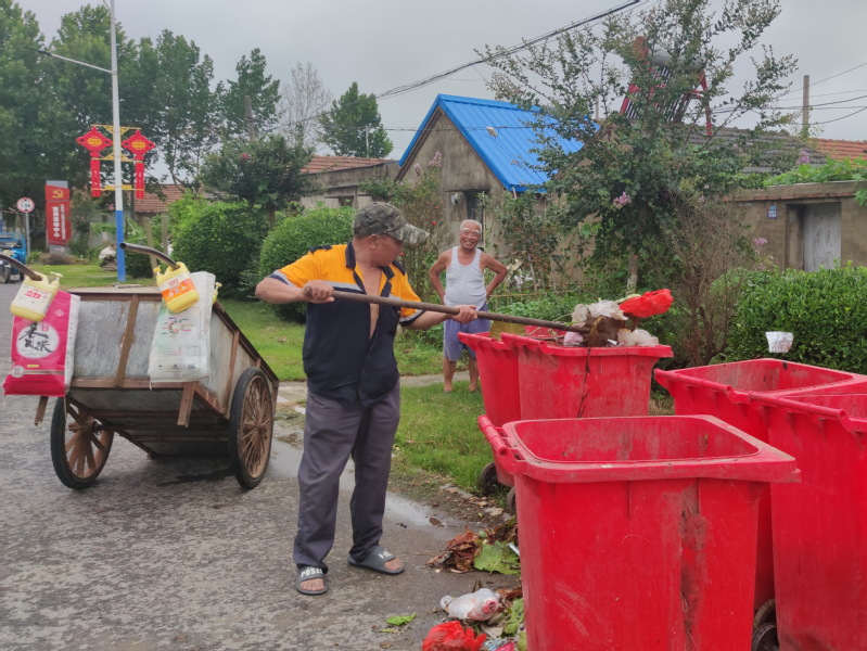 昨天下午,我在淮海農(nóng)場振興路一側(cè)看到,農(nóng)場城西環(huán)衛(wèi)工工何亮明在汗涔涔地揮舞著鐵锨,將一家一戶收集并用拖車拖來的垃圾,又鏟到路旁垃圾桶里的鏡頭。聞著夏日垃圾散發(fā)出來的異味,我的心里不禁感嘆著,一個路人對這刺鼻的臭味異常敏感,何況一個每天3個多小時中,泡在這味中的環(huán)衛(wèi)工人。也正是他們的辛勤付出,換來了農(nóng)場環(huán)境的美好和好心情。