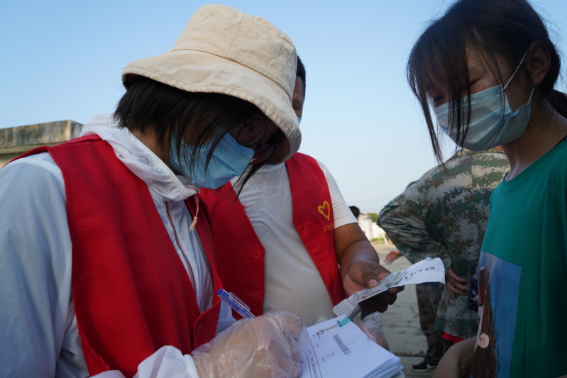 孫川頁是盱眙桂伍鎮(zhèn)山洪村主任、黨支部書記,疫情發(fā)生后,由于是嫁到農(nóng)場,不能到單位上班滯留在了三河,在向農(nóng)場捐贈了酒精、免洗消毒凝膠和100包口罩后,當(dāng)她得知農(nóng)場要進(jìn)行全員核酸檢測的消息,便主動請求到檢測點做志愿服務(wù),在保鮮庫核酸檢測點我們看到了孫川頁,她身穿紅色志愿者馬夾,與志愿者們一起登記填寫信息,維持現(xiàn)場秩序等,作為三河人的家屬,她把三河當(dāng)家,全身心的投入到核酸檢測的各項服務(wù)工作,一直到核酸檢測工作全部完成。