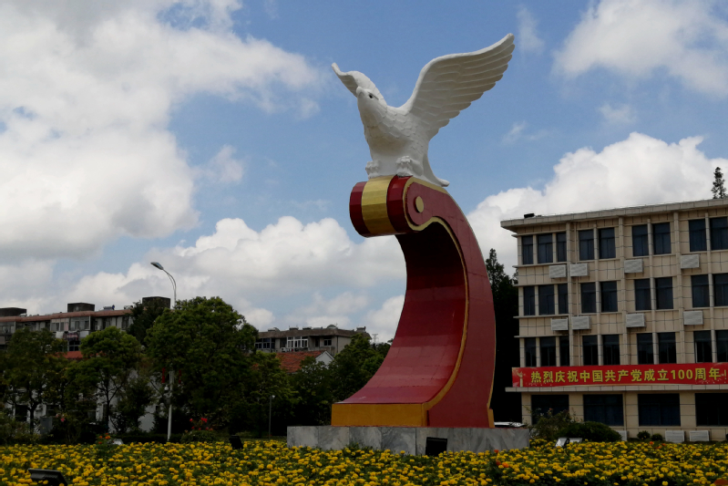 “鯤鵬展翅”是新洋標(biāo)志性景點(diǎn),近30年來,它激勵著新洋人,不驕不躁,不滿足于現(xiàn)狀,為實(shí)現(xiàn)新洋夢,向著新的目標(biāo),展開騰飛的翅膀。在慶祝建黨100周年之際,新洋黨委將雕塑鯤鵬展翅修繕一新,大理石底座換成了紅色的,象征著新洋人要傳承江蘇農(nóng)墾的紅色基因,繼續(xù)發(fā)揚(yáng)“艱苦奮斗,勇于奉獻(xiàn),開拓創(chuàng)新 ”的農(nóng)墾精神,如鯤鵬展翅,飛得更高,飛得更遠(yuǎn)。