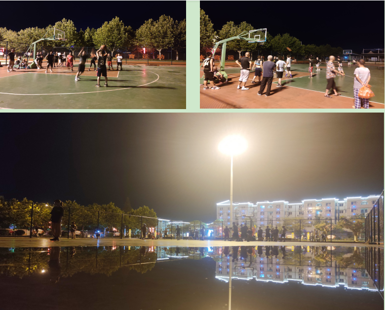 盛夏時節(jié),雖然白天的太陽灸烤似火,但在高溫的天氣過后的四五點鐘,淮海職工休閑體育運動廣場上的籃球場上便開始活躍起來。特別是到傍晚時分和夜間九點多鐘,籃球場上始終洋溢著熱鬧的氣氛。大家在燈光下,許多籃球愛好者們,便相約來到封閉式的籃球場上,時而進場熱身、時而組隊比賽。在比賽間隙,我們甚至能看到有頭10個籃球在同時滾動飛傳。籃球,作為淮海人喜歡的一個體育運動,正成為職工居民喜愛的運動項目之一。