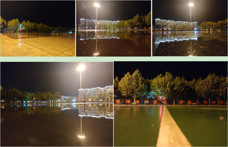 在淮海農(nóng)場的夜晚時分,我們在告別了忙碌的白天,利用周末休息的這段時間,在農(nóng)場的廣場中散步流連中,竟然發(fā)現(xiàn)農(nóng)場的夜晚也是這么的美。雨后的廣場,讓地面、天空與樓宇、燈光有效地融合起來,特別是雨水暫停或是細雨飄飄的間隙,廣場上、道路中很少有人走動的時候,眼前的風景更是將各種元素揉合到了一起,在美的體驗中加劇了農(nóng)場環(huán)境的靜謐。這時,你可以拿起手機多方位多角度地拍攝,你可以架起手機在這種氛圍中抖一抖,也可以上傳朋友圈,讓大家與你共同品味農(nóng)場的大好風光,一定能將你的童心煥發(fā),令你度過一個愉快的夜晚。