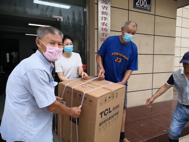 8月19日下午,社區(qū)工作人員吳蓓、陳榮頂著炎炎烈日,駕車到縣殘聯(lián)指定領(lǐng)取的地點,將一臺臺、一件件家電搬運回農(nóng)場社區(qū)。因連日雨水天氣,導(dǎo)致發(fā)放延期至8月24日下午,公共服務(wù)科逐一通知貧困殘疾家庭中的監(jiān)護人到社區(qū)領(lǐng)取家電。