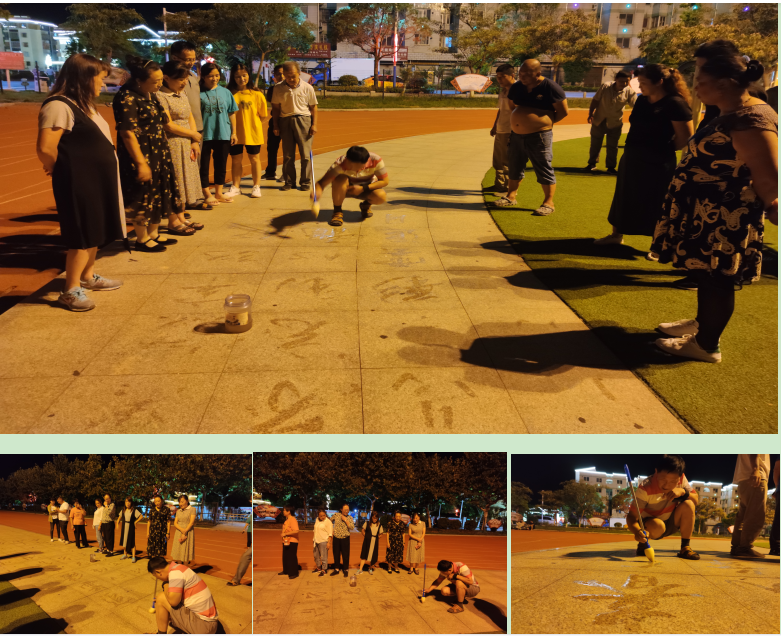 農(nóng)場的職工居民看到他在寫字時,一些有書法功底的人也不免上去拿來筆,也在地上嘗試下寫字,并和他交流,感受在廣場地面上寫字的樂趣。