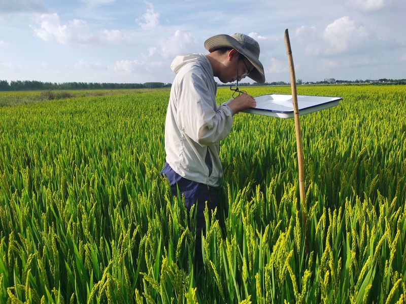 我聽后跟他說:“那可不是丐幫的,那可是我們生產(chǎn)區(qū)的技術(shù)員,正兒八經(jīng)揚州大學(xué)的農(nóng)業(yè)研究生,這幾天因為受燦都臺風(fēng)的影響,天天在水稻田拿棍拿盆在檢查隨臺風(fēng)遷飛過來的飛虱,他們可是我們稻田的守護(hù)者”。