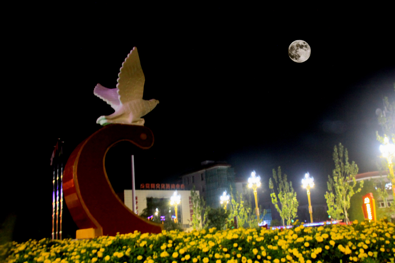 中秋節(jié)之夜,天上圓月高照,地下燈火璀璨,靚麗的景觀令人陶醉。