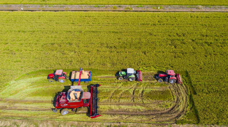 高空俯瞰,新洋的稻田格外俊俏,廣大干群正搶抓晴好天氣組織人力、農(nóng)機(jī),加緊收割水稻,一臺臺大型聯(lián)合收割機(jī)開足馬力穿梭田間,所到之處,水稻盡數(shù)倒下,切割、脫粒、粉碎秸稈一氣呵成,吐出的稻谷顆粒飽滿,空氣中彌漫著陣陣稻香,好一副醉美田園風(fēng)光!