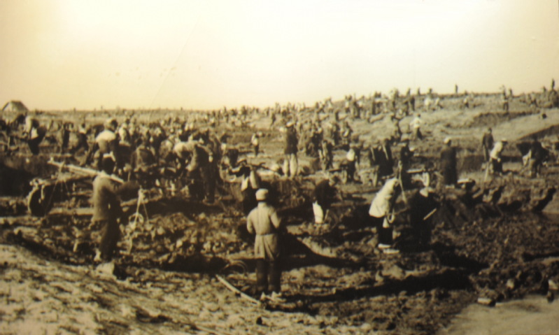 令人感動的是,一支近萬人的部隊(duì),各級干部積極帶頭,在全師樹立了勞動的榮譽(yù)感,開展了勞動競賽,就是留存機(jī)關(guān)體弱的女同志,也自動到廚房做炊事工作,使當(dāng)年直接參加勞動的人就有9000余人。為了建設(shè)進(jìn)度,部隊(duì)官兵中的不少同志,自動延長工作時間,不睡午覺,不避風(fēng)雨,許多同志在部隊(duì)嚴(yán)令休息的情況下,偷偷摸摸地在月光下來到工地?fù)屚跍锨?。他們手上老繭起了一層又一層,腳被蘆根戳破了用泥巴糊上再干。