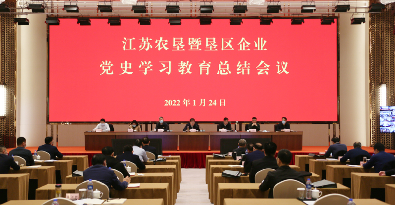 1月24日,江蘇農(nóng)墾暨墾區(qū)企業(yè)黨史學(xué)習(xí)教育總結(jié)會(huì)議在寧召開。會(huì)議深入學(xué)習(xí)貫徹習(xí)近平總書記重要論述重要指示和中央、全省、省國(guó)資委暨省屬企業(yè)黨史學(xué)習(xí)教育總結(jié)會(huì)議精神,全面總結(jié)墾區(qū)黨史學(xué)習(xí)教育取得的成效經(jīng)驗(yàn),對(duì)鞏固拓展黨史學(xué)習(xí)教育成果進(jìn)行部署安排。集團(tuán)公司黨委書記、董事長(zhǎng)魏紅軍出席會(huì)議并講話,他強(qiáng)調(diào),要堅(jiān)決貫徹落實(shí)習(xí)近平總書記關(guān)于黨史學(xué)習(xí)教育的重要指示和中央、省委決策部署,深入學(xué)習(xí)貫徹黨的十九屆六中全會(huì)、省第十四次黨代會(huì)精神,不斷鞏固拓展黨史學(xué)習(xí)教育成果,奮力譜寫“強(qiáng)富美高”新江蘇現(xiàn)代化建設(shè)的農(nóng)墾篇章,以?shī)^進(jìn)新征程、建功新時(shí)代的優(yōu)異成績(jī)迎接黨的二十大勝利召開。集團(tuán)公司黨委副書記、總經(jīng)理胡兆輝主持會(huì)議,黨委副書記姚準(zhǔn)明傳達(dá)中央、全省、省國(guó)資委暨省屬企業(yè)黨史學(xué)習(xí)教育總結(jié)會(huì)議精神,黨委委員、副總經(jīng)理姜建友,黨委委員、總會(huì)計(jì)師劉克英,黨委委員、紀(jì)委書記李旭東,黨委委員、副總經(jīng)理王立新出席會(huì)議。
