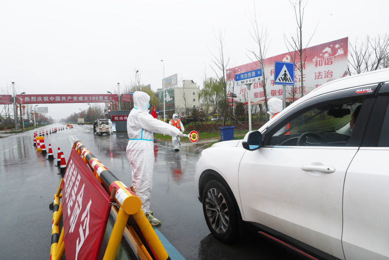 “您好,請出示您的行程碼,配合我們測量體溫……”3月25日上午,外面仍然下著大雨,在新洋農場疫情防控西卡口點上,頭發(fā)和臉龐早已濕透的防疫人員一邊打著手勢,一邊對來往人員車輛進行引導檢查,整個程序有條不紊。