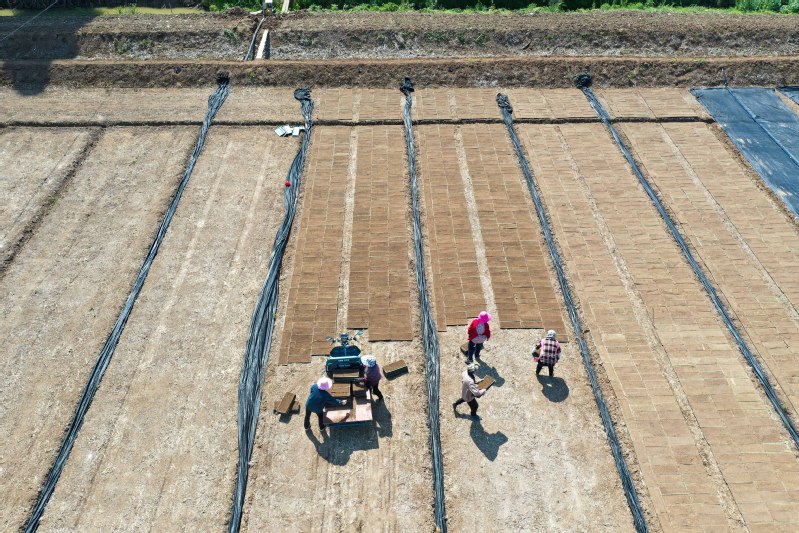 據(jù)了解,此次為有機稻育秧,采取微噴灌流水線育秧技術。為促進稻種發(fā)芽,落谷前對稻種進行清水浸種、清水沖洗、涼干處理。
