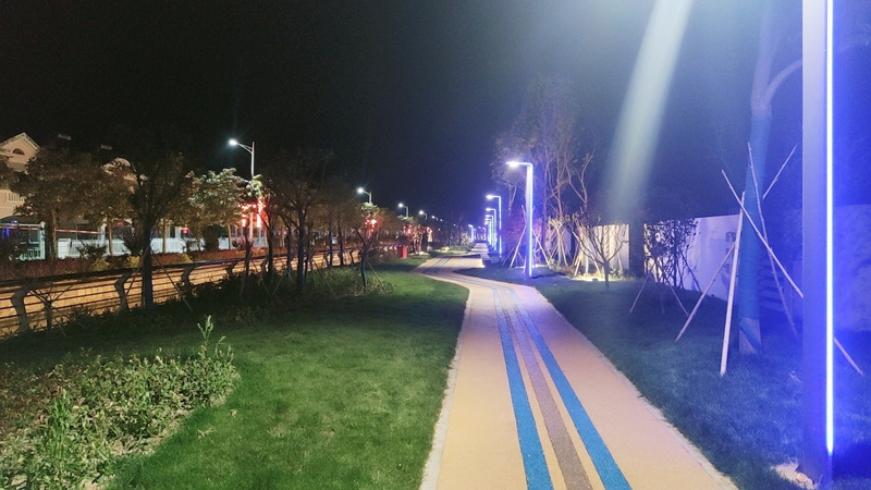 “沒想到農(nóng)場(chǎng)也建起了健身步道,而且步道兩側(cè)還栽種了許多綠化苗木和花草,還配置了許多景觀小品、休息坐椅、親水平臺(tái),生活在農(nóng)場(chǎng)真是太幸福了。”居住在農(nóng)場(chǎng)神禾路別墅區(qū)的張老漢望著河對(duì)岸清新的環(huán)境感慨地說(shuō)道,“沒建這個(gè)步道前,其間要么是堆積的雜物、雞鴨棚或是種植的莊稼,破敗的狀況讓人不忍直視?,F(xiàn)在好啦,新砌的圍墻將步道與居住區(qū)隔開,道路是彩色道路,兩邊還裝了別致的路燈,不同的樹木自成一體,大家茶余飯后就可以在步道上邊散步邊聊天了。”
