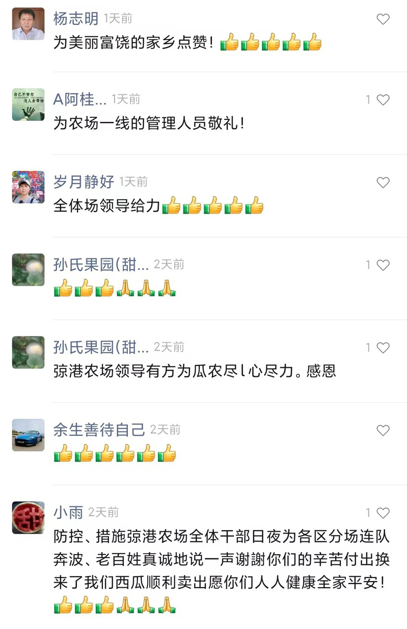 西瓜場(chǎng)來(lái)臨正值疫情防控形勢(shì)最嚴(yán)峻的時(shí)候,按照上級(jí)疫情防控要求,弶港農(nóng)場(chǎng)黨委制定出防控西瓜運(yùn)銷(xiāo)車(chē)輛閉環(huán)管理工作方案,成立西瓜運(yùn)銷(xiāo)“疫”線指揮部,設(shè)立八個(gè)工作專(zhuān)班,近百人的西瓜閉環(huán)運(yùn)銷(xiāo)隊(duì)伍,日夜奮戰(zhàn),全程嚴(yán)密管控西瓜運(yùn)銷(xiāo)貨車(chē)閉環(huán)管理,確保全國(guó)各地貨車(chē)開(kāi)得進(jìn)來(lái),農(nóng)場(chǎng)職工西瓜賣(mài)得出去。在這場(chǎng)戰(zhàn)役中,全場(chǎng)廣大黨員干部在抗“疫”一線“佩黨徽、亮身份、做表率”,以“一名黨員一面旗幟”的良好形象,全力以赴,吃苦在前、沖在一線,弶港農(nóng)場(chǎng)2萬(wàn)多噸“弶農(nóng)”牌西瓜順利銷(xiāo)售。“美麗弶農(nóng)”視頻號(hào)上反映西瓜運(yùn)銷(xiāo)工作的小視頻,7千多次瀏覽量,幾百人點(diǎn)贊轉(zhuǎn)發(fā),閉環(huán)運(yùn)銷(xiāo)工作得到廣大職工群眾的一致稱(chēng)贊,公司黨委書(shū)記胡廣斌在工作群中感嘆道“得到群眾的好評(píng)不容易”。