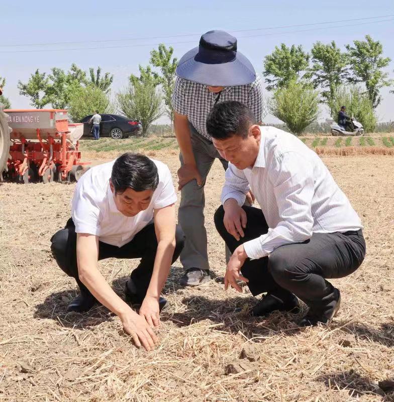 胡兆輝先后考察了蘇墾農(nóng)發(fā)股份公司崗埠分公司王溝生產(chǎn)區(qū)玉米大豆帶狀復(fù)合種植播種現(xiàn)場(chǎng)、耕地現(xiàn)場(chǎng)和崗埠生產(chǎn)區(qū)曬場(chǎng)糧食安全情況,并與檢查玉米大豆帶狀復(fù)合種植質(zhì)量的田間工作人員親切交談,對(duì)崗埠全場(chǎng)“一盤棋”、全力戰(zhàn)“三夏”給予充分肯定。胡兆輝指出,要提高政治站位,堅(jiān)決服從國(guó)家戰(zhàn)略需要,高質(zhì)量完成省委省政府交予的重要任務(wù)。要增強(qiáng)全局意識(shí),堅(jiān)定信心,服從指揮,把思想認(rèn)識(shí)行動(dòng)統(tǒng)一到集團(tuán)公司決策部署上來(lái),以“國(guó)之大者”的胸懷壓實(shí)責(zé)任擔(dān)當(dāng)。要堅(jiān)定不移推進(jìn)全面從嚴(yán)治黨,推動(dòng)黨建工作與產(chǎn)業(yè)融合發(fā)展,以高質(zhì)量黨建引領(lǐng)高質(zhì)量發(fā)展。胡兆輝強(qiáng)調(diào),要通過(guò)推進(jìn)玉米大豆帶狀復(fù)合種植推動(dòng)產(chǎn)業(yè)結(jié)構(gòu)優(yōu)化升級(jí),及時(shí)調(diào)整產(chǎn)業(yè)結(jié)構(gòu)和產(chǎn)品布局,加大機(jī)械投入,大力發(fā)展現(xiàn)代農(nóng)業(yè),力爭(zhēng)實(shí)現(xiàn)跨越式發(fā)展。要落實(shí)“藏糧于地、藏糧于技”以及藏糧于管戰(zhàn)略,嚴(yán)格執(zhí)行技術(shù)規(guī)程和試驗(yàn)示范工作方案,及時(shí)總結(jié)經(jīng)驗(yàn),確保玉米大豆帶狀復(fù)合種植任務(wù)按時(shí)完成,堅(jiān)決打贏玉米大豆帶狀復(fù)合種植播種這場(chǎng)硬仗。胡兆輝要求,要深刻理解做好“三夏”工作的重大意義,充分認(rèn)清“三夏”工作的復(fù)雜性、艱巨性、特殊性,攻堅(jiān)克難,主動(dòng)擔(dān)當(dāng)作為,全面抓好信訪穩(wěn)定、疫情防控、安全生產(chǎn)等工作,圍繞“五保一控”目標(biāo),誓奪“三夏”工作全面勝利,為江蘇農(nóng)墾高質(zhì)量完成10萬(wàn)畝玉米大豆帶狀復(fù)合種植貢獻(xiàn)崗埠力量。