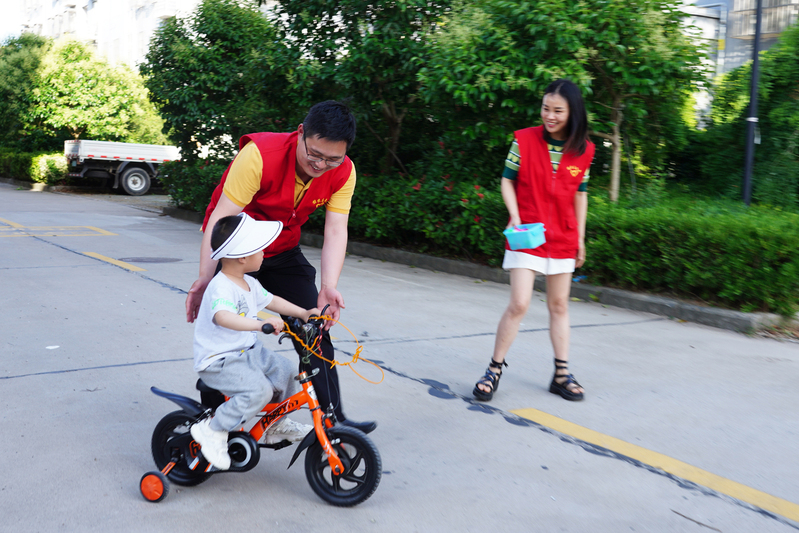 6月10日下午,弶港農(nóng)場團(tuán)委“愛心爸爸”“愛心媽媽”帶著兒童繪本和玩具,走進(jìn)困境兒童小浩浩的家里?!皧W迪曼與怪獸作戰(zhàn)斗…… ”夢想小屋的書桌前,浩浩依偎在“愛心媽媽”孫菁懷里,聽著有聲有色的奧特曼的故事?!皠e怕,勇敢地往前騎,我在身后保護(hù)你”“我們一起來比賽,看誰快”小區(qū)的空地上,在“愛心爸爸”陳海榮鼓勵下,浩浩騎著兒童單車,開朗的笑聲在小區(qū)里飄蕩。一起玩拼圖、畫畫、做游戲,幾個小時下來,不愛說話的小浩浩從最初的羞澀生疏,到漸漸展露笑容,短暫的相聚中,與“愛心爸媽”建立了深厚的信任和感情。