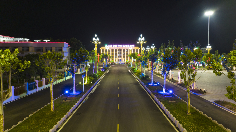 夜幕降臨,華燈初上,新洋農場各處燈光陸續(xù)亮起,整個城鎮(zhèn)變成燈的海洋、光的世界,夜景如夢如幻景美如畫。置身于黨建文化廣場上空鳥瞰這座城鎮(zhèn),燈火輝煌,溢彩流光。