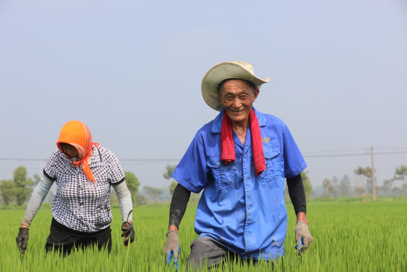 725日,寶應(yīng)湖農(nóng)場有機(jī)稻田,工人們正在拔除田間雜草雜稻。寶應(yīng)湖農(nóng)場有機(jī)稻種植1200畝,有機(jī)水稻生長全過程嚴(yán)格按照歐盟和國家有機(jī)食品標(biāo)準(zhǔn)執(zhí)行,每個(gè)環(huán)節(jié)均可溯源。