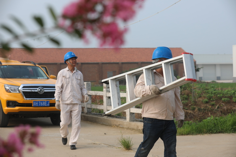 727日早上6點(diǎn)半,寶應(yīng)湖農(nóng)場各居民臺(tái)變處,一位位頭戴安全帽的電力小哥已經(jīng)到崗就位。