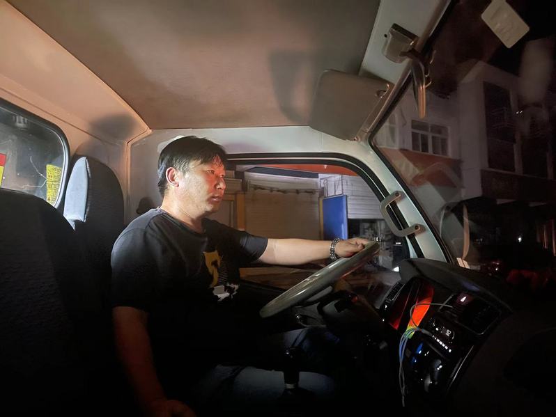 一個點(diǎn)一個點(diǎn)跑,一桶一桶裝,一車一車卸。戴玉剛對每個清運(yùn)點(diǎn)的位置熟悉得不能再熟悉,一天作業(yè)下來能跑40多公里。當(dāng)車?yán)锢幚硗戤?,他們又開始洗車刷車……等到都弄干凈了才回家吃點(diǎn)東西,再睡上一覺。